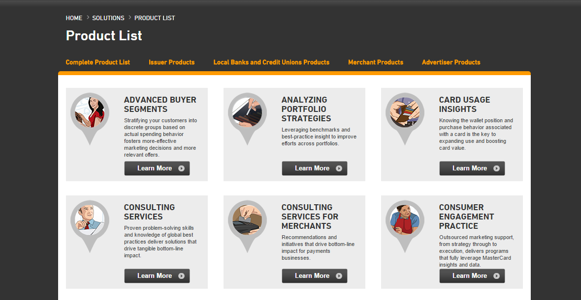 APT의 역량이 포함된 다양한 MasterCard Advisors Product List