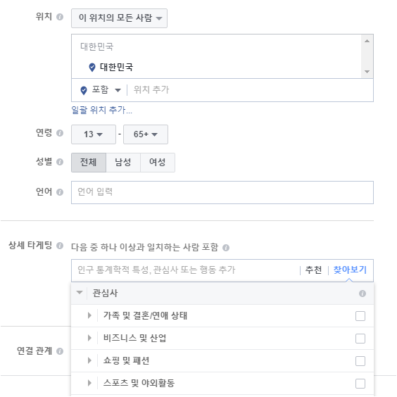 위 그림은 페이스북이 제공하는 광고 타겟팅 옵션 중 하나인 ‘저장된 타겟’ 기능입니다. 하루 10억명 페이스북 사용자의 행동 데이터를 근거로 관심사별 타겟팅 옵션을 제공합니다. 올바른 대상을 쉽게, 그리고 상세하게 지정할 수 있도록 함으로써 사용자가 ‘관심을 가질만한 내용’의 광고를 내보내 광고의 맥락적 효과를 높이려는 의도가 있습니다.