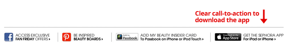 반면, ‘Sephora’는 모든 페이지 하단부에 iOS 앱 다운로드 링크를 게재하여