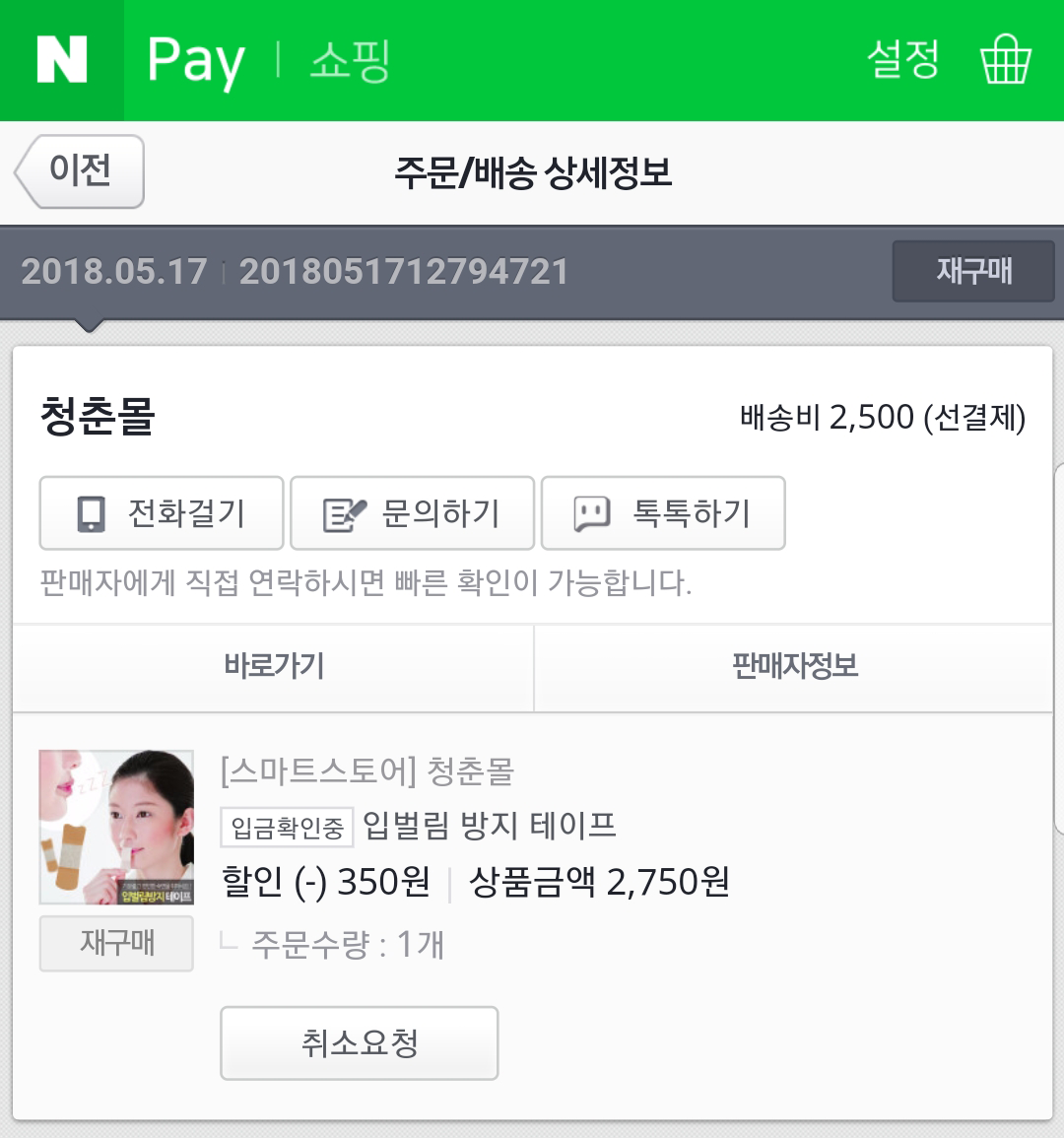 위 그림처럼 주문/배송정보의 첫번째 뎁스에서 개별 구매건에 대해 취소할 수 있는 경로를 열어두는 것이 좋습니다. 배송 시작 전에 긴급하게 취소를 해야하는 사용자가 갈피를 잡을 수 있도록 직관적이어야 합니다.