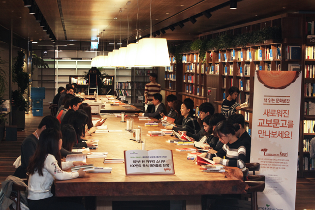교보문고는 2015년 말에 상징적인 매장인 광화문점의 목 좋은 위치에 있던 매대들을 없애고 도서관처럼 앉아서 책을 볼 수 있는 장소를 마련하는 파격을 실행 했습니다. ‘복합문화공간’을 만들어서 서점을 책을 파는 곳이 아닌 책과 함께하는 라이프스타일을 느낄 수 있는 곳으로 인식시키려는 시도라는 평가를 받았지요.