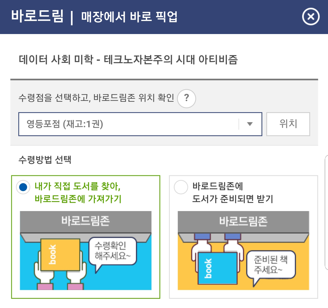 (읽던 책이 마음에 들면 앉은 자리에서 일어날 필요 없이 바로드림으로 구매할 수 있다)