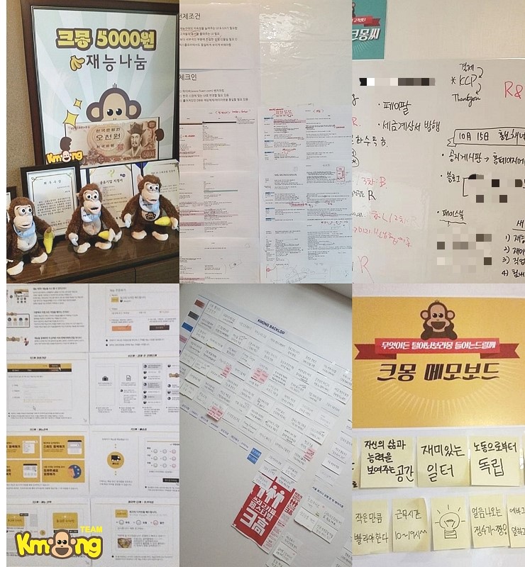 사진을 보시면 크몽팀의 생각이나 가치관, 해야 할 일, 진행 중인 일 등등 다양한 내용들이 적혀 있네요.