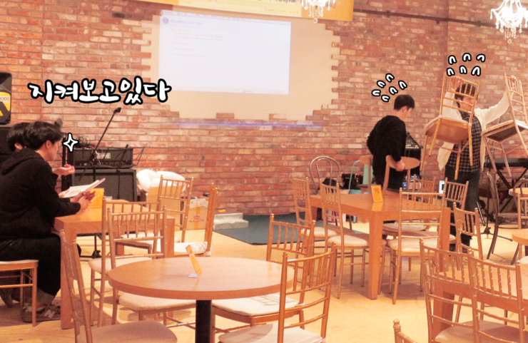 혹은 이런 사진! 시간이 없다보니 팀원들은 너나할거 없이 의자들고 슉슉 이동!
