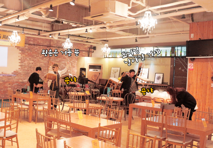 어워즈 오픈까지 약 20분 남은 시간, 어지럽게 늘어져있는 의자들을 옮겨라!!!!