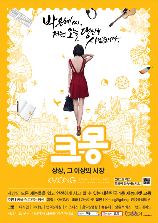 글이 많은 정보성 포스터 사이에 그림이 딱!!!!!!! 강조된 크몽의 포스터가 붙으니