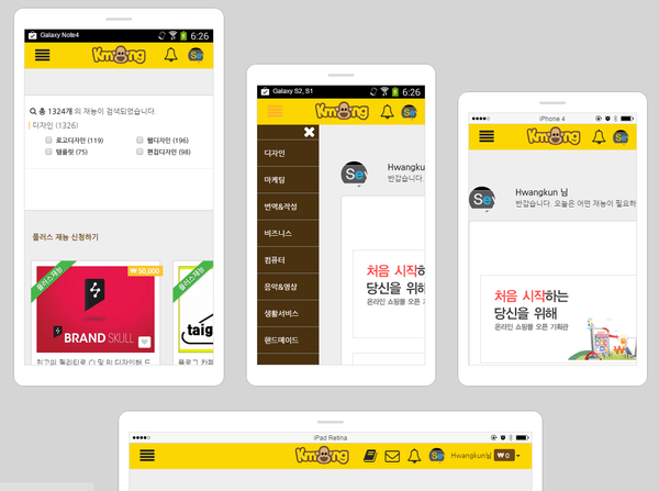 지금 여러분들이 가지고 계신 폰으로 크몽의 반응형메인을 만나실 수 있답니다~!!