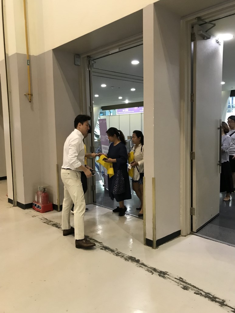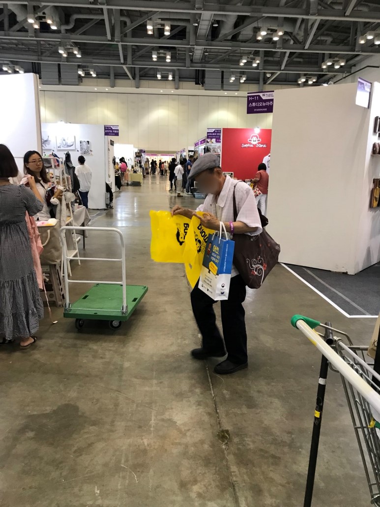 ▲ 입장 전 크몽 쇼핑백을 나누어주는 모습