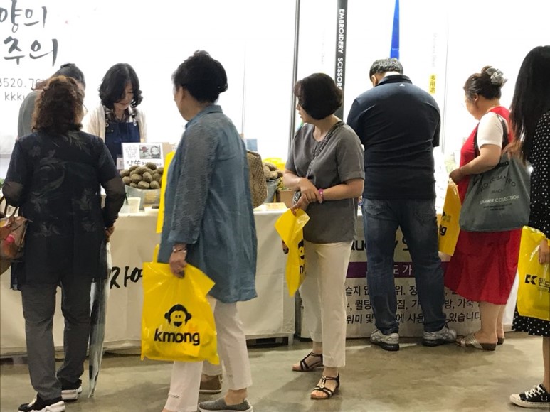 박람회에 참석하신 남녀노소 모두가 크몽이봉투를 들고 페어를 관람 하는 모습이 화제가 되었답니다.