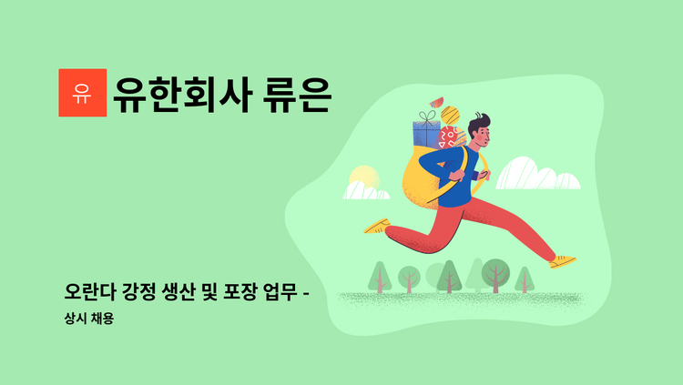 오란다 강정 생산 및 포장 업무 회사로 3 명 규모의 입니다.