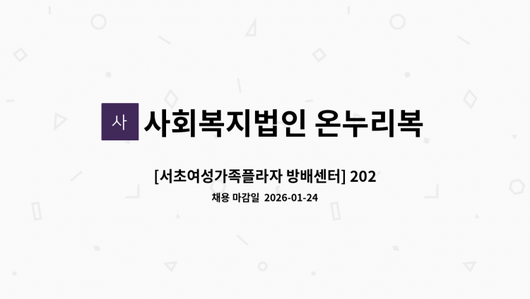 사회복지법인 온누리복지재단(서초여성가족플라자 방배센터)입니다.