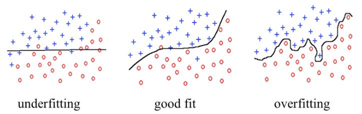 [그림 2]에서 볼 수 있듯이 Underfitting은 데이터 분류 기준을 단순하게 구할 수 있으나 새로운 데이터 집합을 Underfitting된 모델에 대입하면 의미 있는 결과를 얻기가 힘듭니다. 이에 반해 Overfitting은 모든 데이터를 정확히 분류하고 있으나 데이터의 특성을 일반화시킬 수 없습니다.
