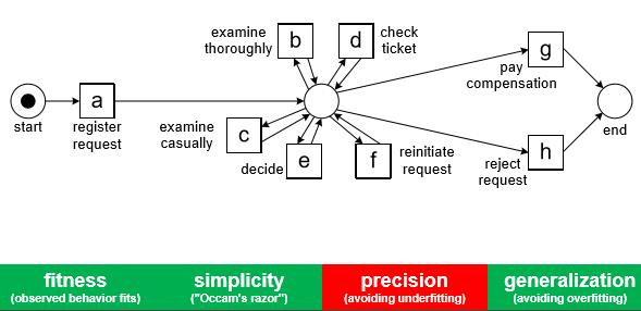 이상과 같이 Fitness, Generalization, Simplicity, Precision 4가지 기준을 잘 조화시켜야 정확한 프로세스 모델 도출이 가능합니다.