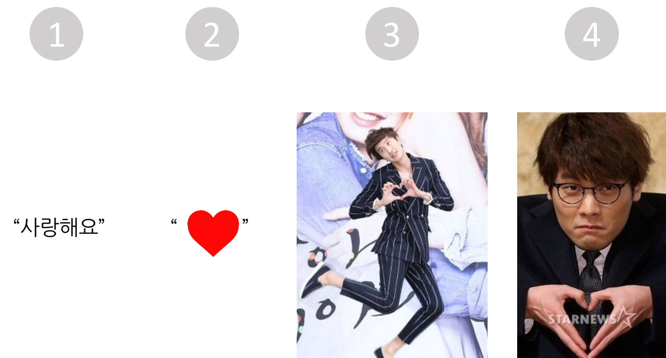 콘텐츠는 크리에이터가 만들지만, 콘텐츠를 완성하는 건 바로 독자입니다. 독자가 읽어주지 않는 콘텐츠는 무용지물입니다. 그렇기 때문에 잘 만드는 만큼 잘 전하는 것도 중요합니다. ‘사랑한다’는 말 한마디도 전하는 방법은 무궁무진합니다. 만약 3번과 같은 이미지를 독자의 머릿속에 떠올리게 하려고 콘텐츠를 만들었는데 정작 독자는 아무 반응이 없다면 이는 분명 콘텐츠에 담긴 메시지를 잘못 전한 것이고, 전적으로 크리에이터의 실수입니다.