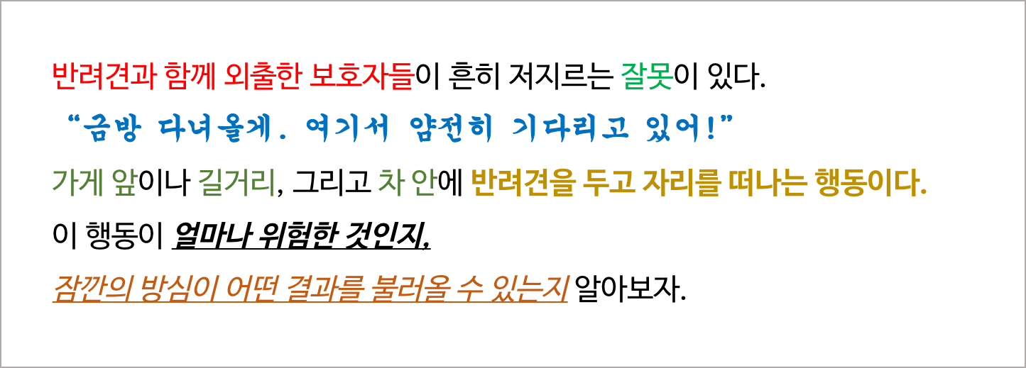 ‘이것만큼은 독자에게 꼭 전달하겠다!’하는 것이 있다면 우주가 나서서 도와주길 기다리지 마세요. 색, 서체, 크기, 굵기 등을 활용하는 방법이 있습니다.