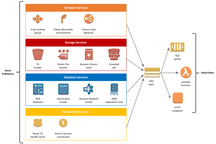 Event-Driven Computing with Amazon SNS and AWS Compute, Storage, Database, and Networking Services