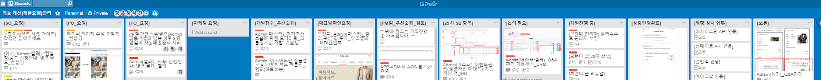 정리하면 짧은 내용이지만, 실은 트렐로를 세팅하기까지 많은 혼선이 있었다. 협업을 거치면서 브랜디 업무에 가장 최적화된 List를 구축하고 나니 업무 History관리도 쉬워졌고, 요청자 파악도 명확해졌다. 게다가 이미지나 파일을 첨부할 수 있어 트렐로는 통합관리도구로 적절하다고 생각한다.