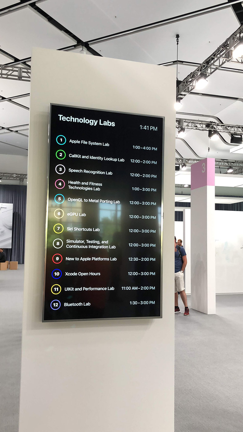 세션을 듣고 궁금한 점이 생겼다면 Labs(랩스)에서 질문할 수 있습니다. 각 세부 분야별 애플 기술자들이 시간대별로 모여서 개발자의 질문을 받거나 문제점을 해결할 수 있도록 도움을 줍니다.