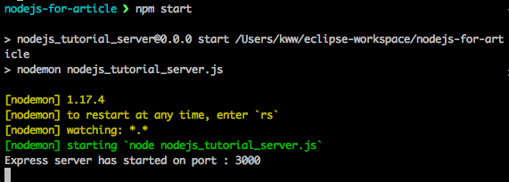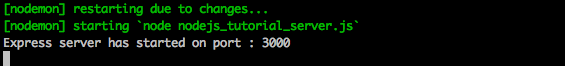 nodemon을 통해 어플리케이션이 실행된 모습