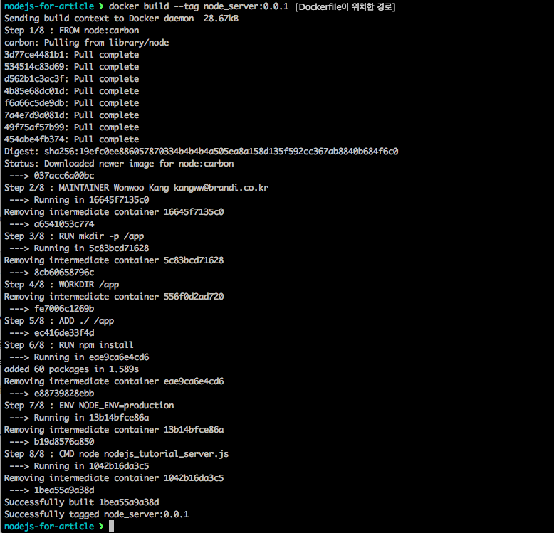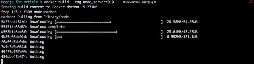 docker build --tag node_server:0.0.1 [Dockerfile이 위치하는 경로]
