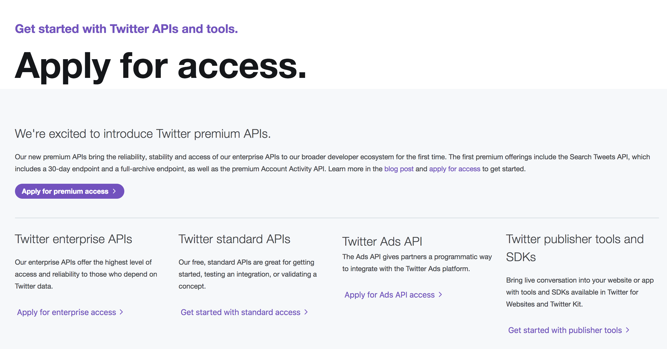Twitter standard APIs > Get started with standard access를 클릭합니다.