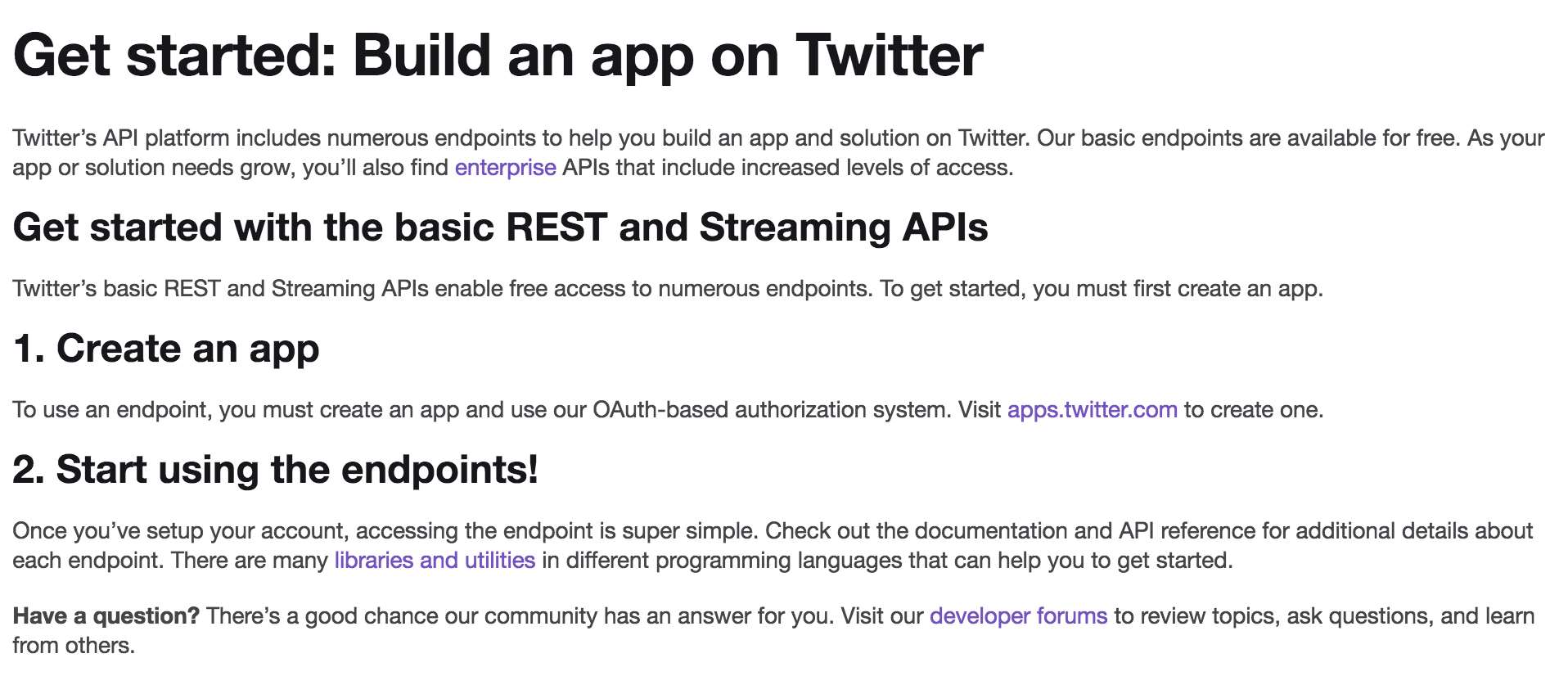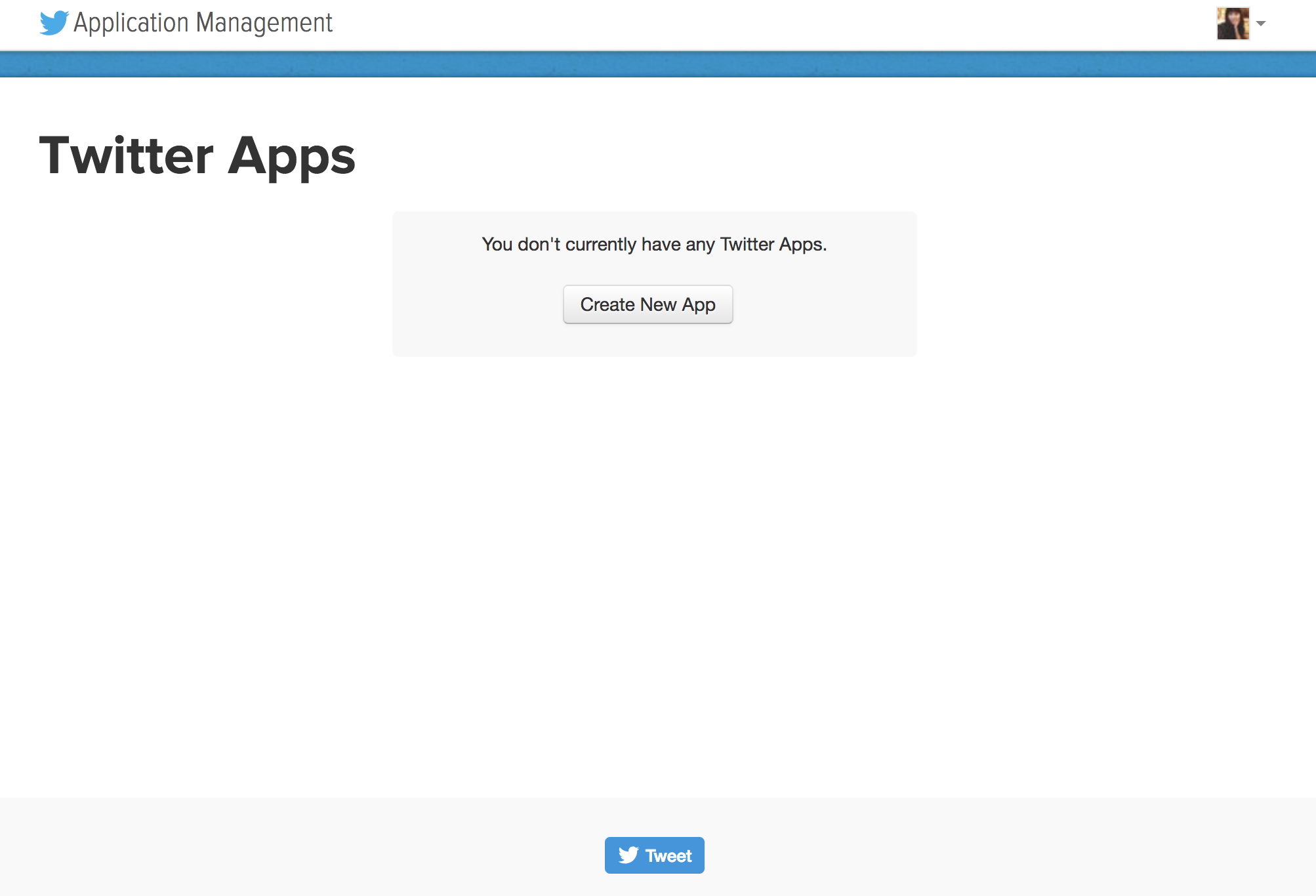 등록된 개발자 앱이 없으면 Create an app의 apps.twitter.com을 클릭합니다.
