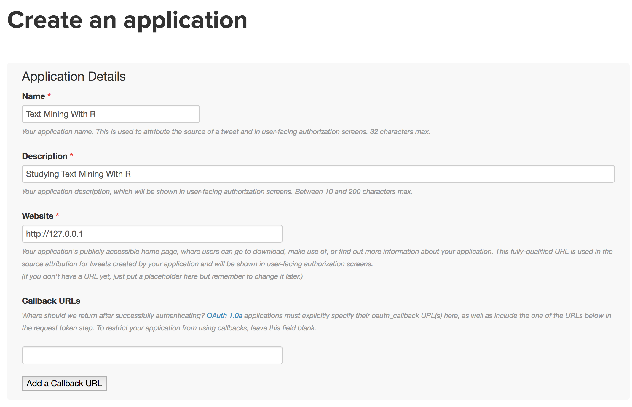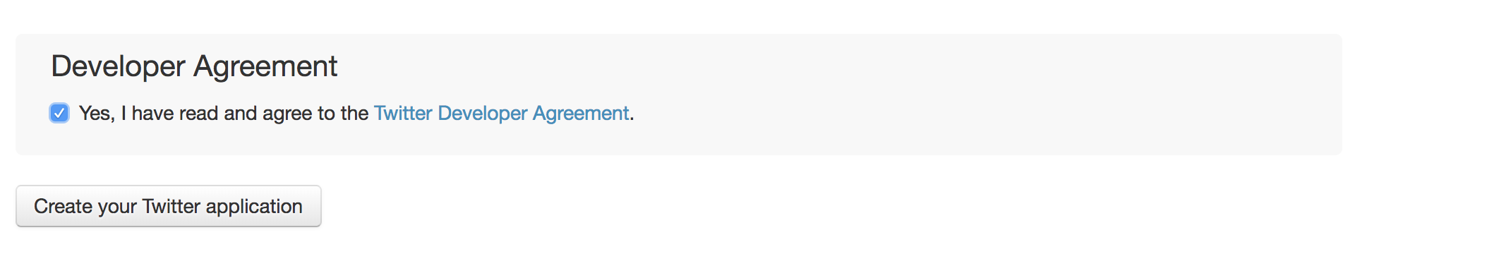 약관에 동의한 후 Create your Twitter application을 클릭합니다.