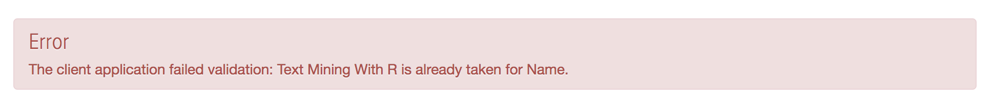 만약 어플리케이션 이름이 중복된다면 위와 같은 에러 메세지가 나올 겁니다.
