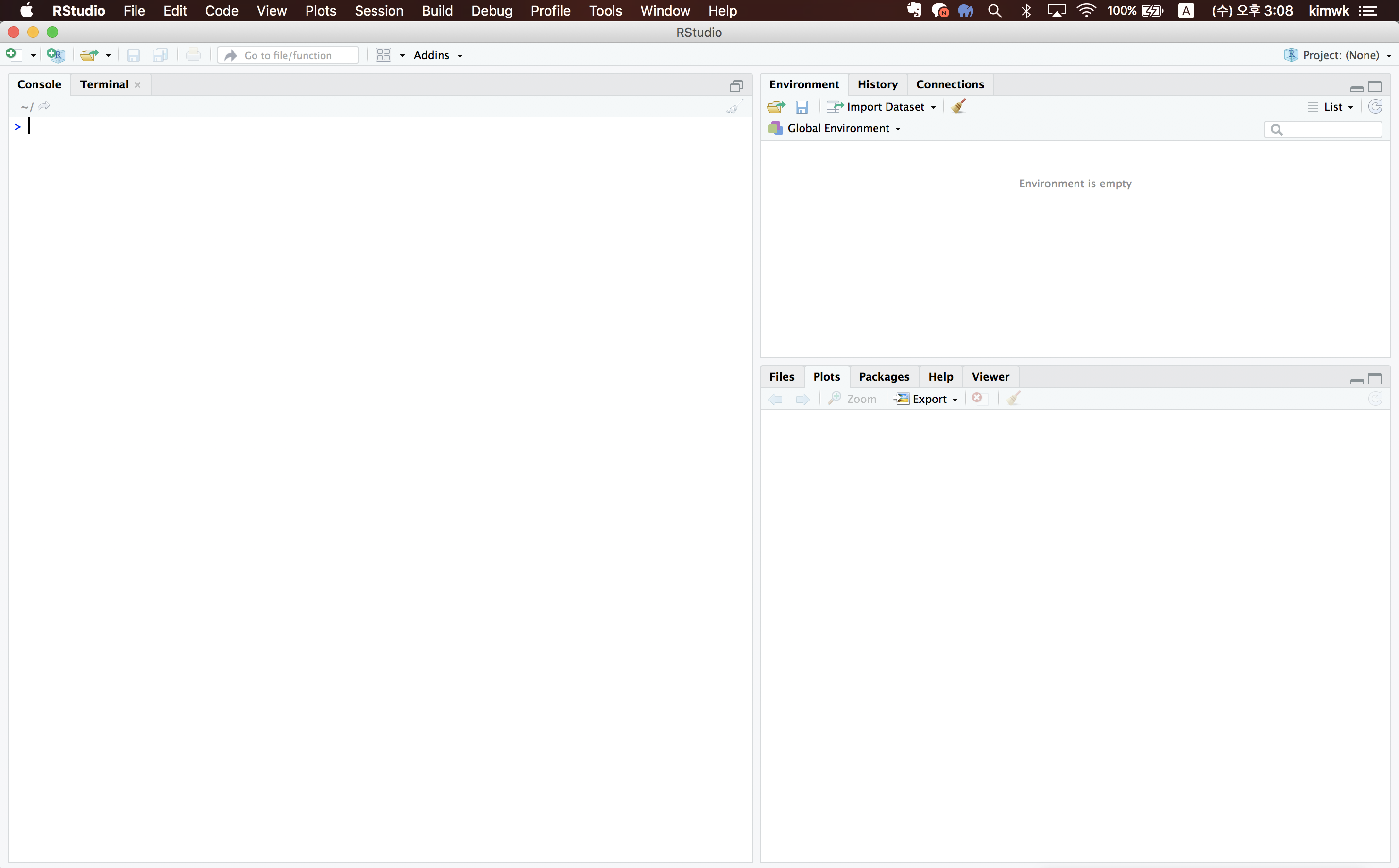 RStudio가 정상적으로 실행이 된다면, 이제 준비는 끝났습니다!