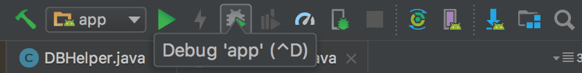 Debug ‘app’ 버튼 또는 단축키(^D)를 클릭해 디버깅 모드를 실행합니다.