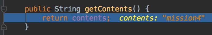 Step Into 버튼을 클릭해 getContents() 메서드의 첫 라인으로 이동합니다.