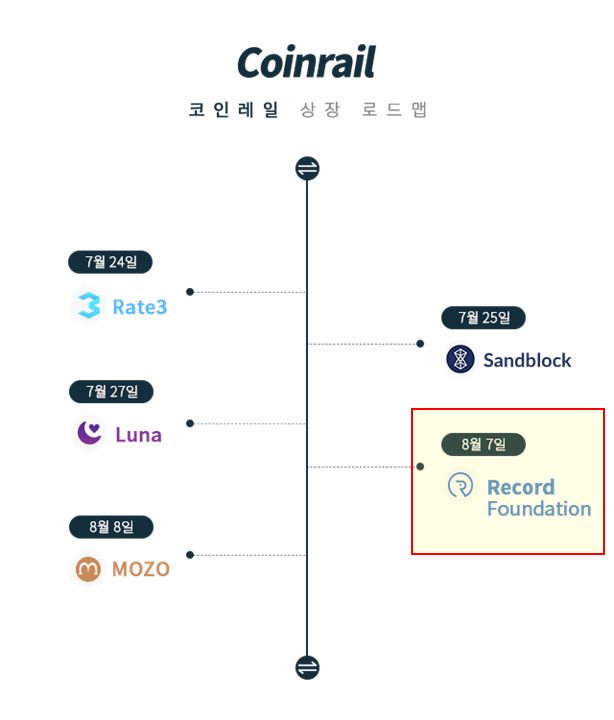 얼마 전 코인레일이 정상화됨에 따라 향후 상장 로드맵이 발표된 바 있습니다. 레코드 파운데이션을 찾아보실까요?