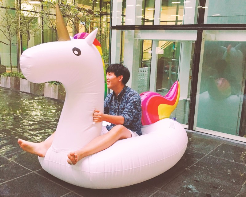 유니콘 튜브에서 즐거워하는 서홍석 개발자