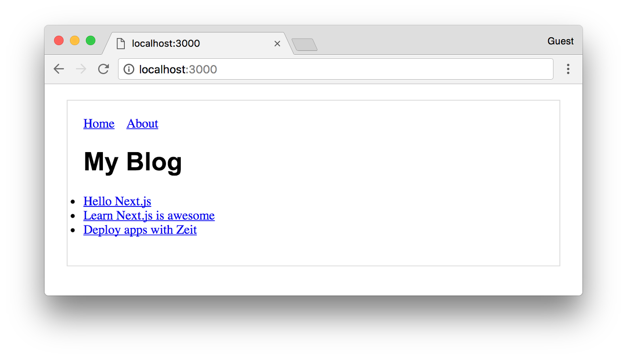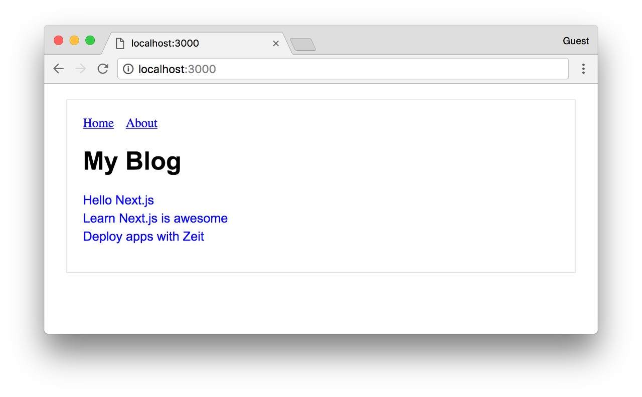 home 페이지에 작은 변화를 만들어봅시다. 다음과 같이 링크 컴포넌트를 분리시켰습니다: