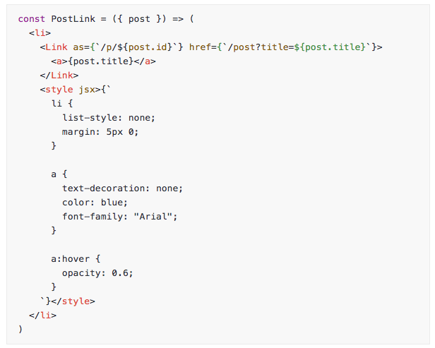 styled-jsx의 특징은 더 큰 애플리케이션에서 스타일들을 관리할 때 도움이 됩니다.
