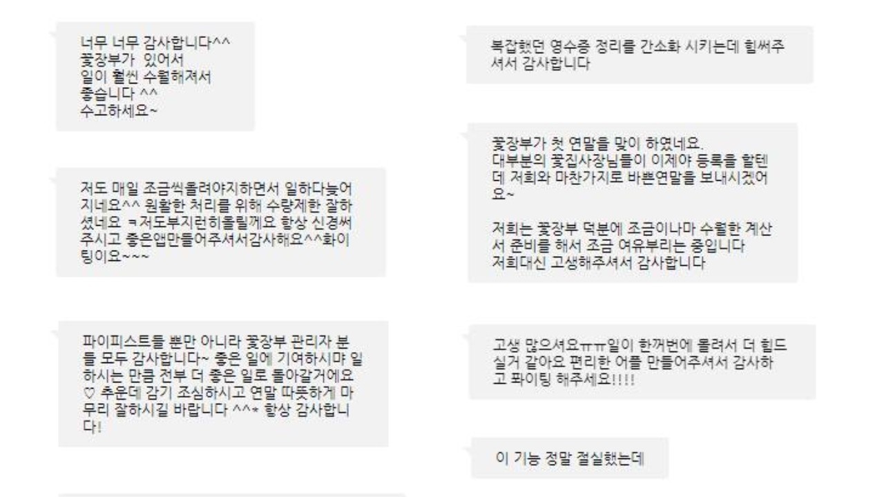 서비스를 통해 화훼 도-소매 상인들이 계산서를 쉽게 처리할 수 있습니다.
