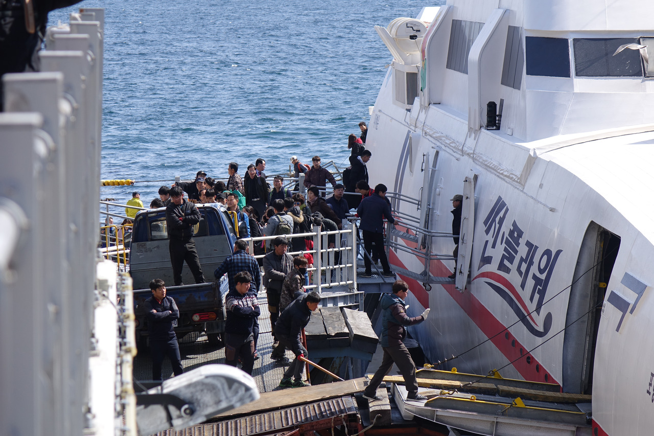 포항에서는 배로 울릉도까지 약 3시간 30분이 걸립니다. 로모가 탔던 배는 대저해운에서 운영하는 '썬플라워호'입니다. 이 배는 2394톤으로 약 900명가량의 승객이 탈 수 있는데, 돌아오는 날 탔던 '씨스타호'에 비해선 확실히 오래된 배인 것을 한눈에 알 수 있었습니다. 실제로 이 배는 20여 년이 넘어 정기 점검이 필수적이고, 지역 주민들 역시 파도의 영향을 덜 받을 수 있는 더 큰 배가 울릉도를 오가길 희망한다고 합니다. 결항일을 대폭 줄일 수 있기 때문이죠. 지금보다 좀 더 편하게 울릉도를 찾을 수 있다면 어떨까요? 배에 오르기 전 멀미약을 먹었는데도 속이 울렁거려, 눈을 꼭 감고 잠을 청해보았습니다.