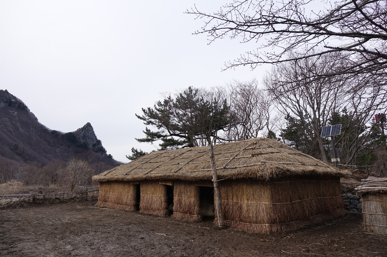 아직 울릉도의 산에는 눈이 채 녹지 않았습니다. 겨울이 남아 있는 성인봉 원시림을 찬찬히 걸어봅니다. 걷다 보니, 너와집과 함께 울릉도의 전통적인 가옥 형태 중 하나인 투막집을 만날 수 있었습니다. 바깥의 찬 공기과 많은 눈으로부터 집을 보호할 수 있도록, 벽을 치듯 억새로 만든 우대기를 집 전체를 두른 형태였는데, 직접 안에 들어가서 이 집에서 생활을 했을 옛 울릉도 주민들의 모습을 잠시 상상해보았습니다.