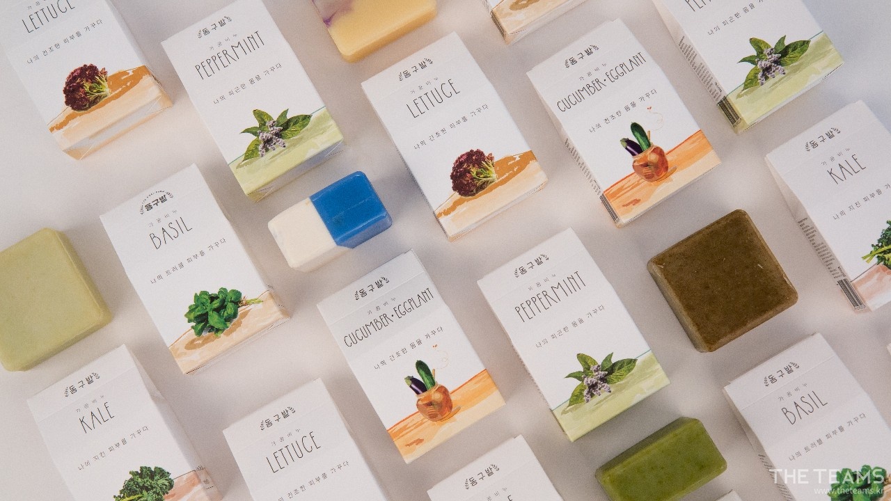 동구밭의 대표상품은 텃밭의 작물로 만든 '가꿈비누'와 과도한 세제 사용을 줄이기 위해 개발된 천연 설거지 비누인 '올바른 설거지 워싱바' 입니다. 주로 자사몰과 온라인 채널에서 판매하고 있으며, 올리브영, A LAND와 같은 오프라인 매장에도 입점이 되어있는 상태입니다.
