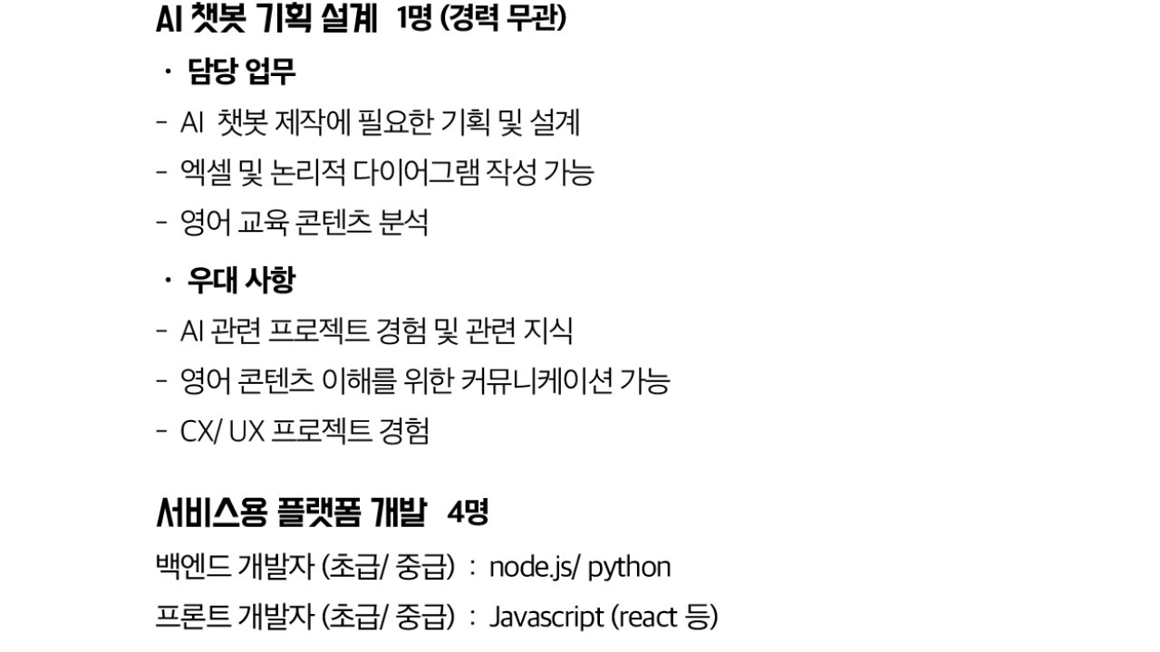 ○ AI 챗봇 기획 설계 (경력 무관) 1명