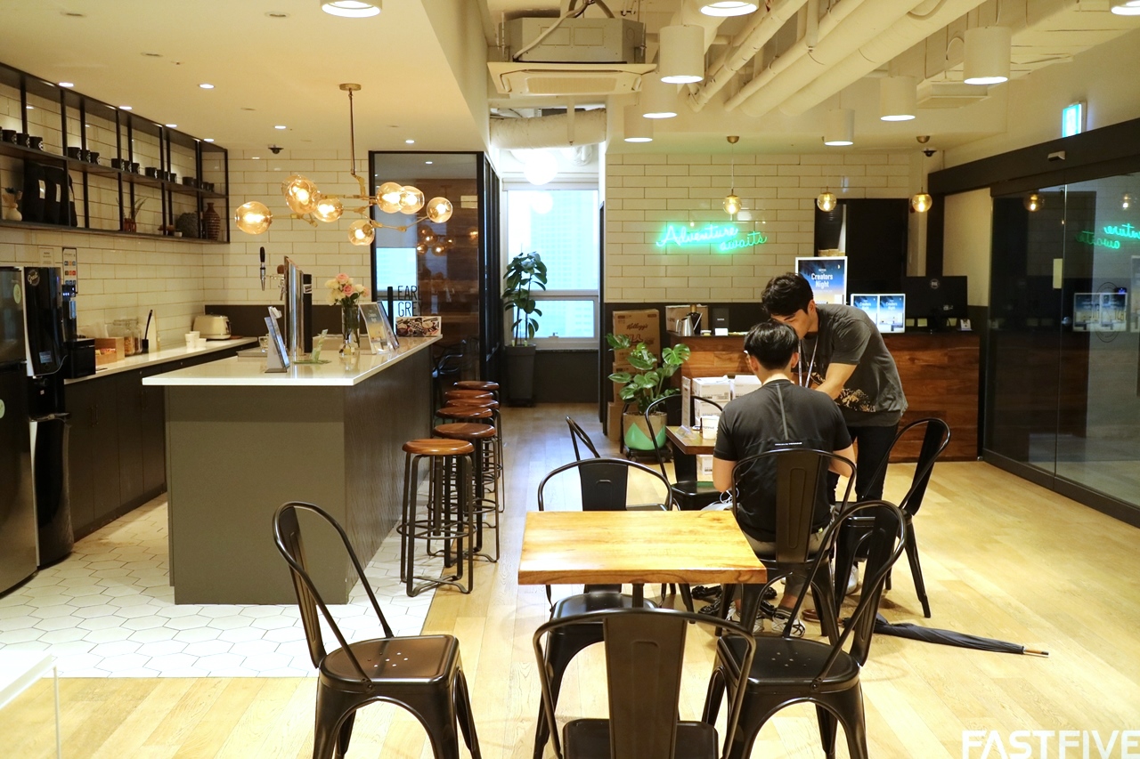매니저들마다, 그리고 호점 분위기에 따라 하루 일과가 조금씩 다를 것 같은데요. 출근하고 가장 먼저 하는 일은 입주자분들과 인사를 나누는 거예요. 라운지에서 만나 인사를 나누다 보면 자연스럽게 커피 한 잔 내리면서 티타임을 가지게 되더라고요. 요즘 하시는 일에 대한 이야기를 나누기도 하고 패스트파이브에서 생활하시는 이야기를 듣기도 합니다.