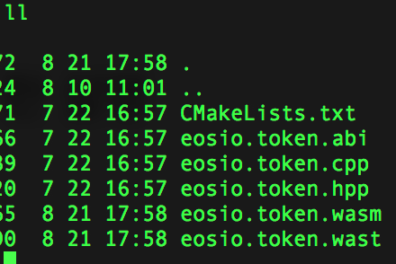 배포할 컨트랙트는 eosio.token 으로 eos 개발환경 세팅 시 존재하는 코드를 컴파일하여 실제 사용하는 계정에 setting 하겠습니다. 먼저 컴파일을 위해 ../eos/contracts/eosio.token 으로 이동 하겠습니다.