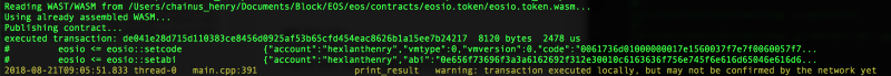 $ cleos set contract hexlanthenry ../eos/build/contracts/eosio.token