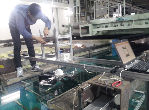 2014년 실제 파력발전기를 테스트하기 위한 제품을 만지작거리는 나의 모습