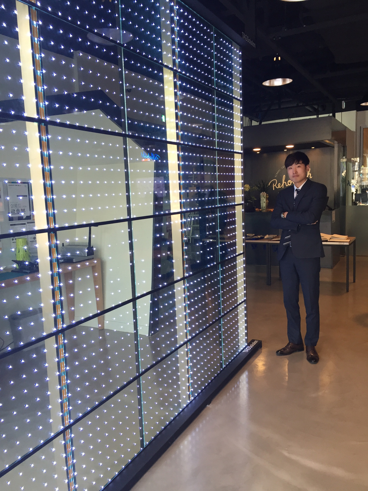 신촌에 설치한 제품과 하드웨어 뽕에 취한 나의 모습솔직해지자면, 투명LED제품은 기존에 이미 있던 제품이다. 국내 코스닥 상장사이자 LED 글래스를 만드는 지스마트라는 기업을 벤치마킹하며 투명LED디스플레이에 대한 관심도가 증가하였다.