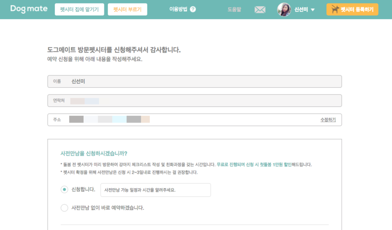 말그대로, 사전에 방문펫시터와 만나보는 시간이다