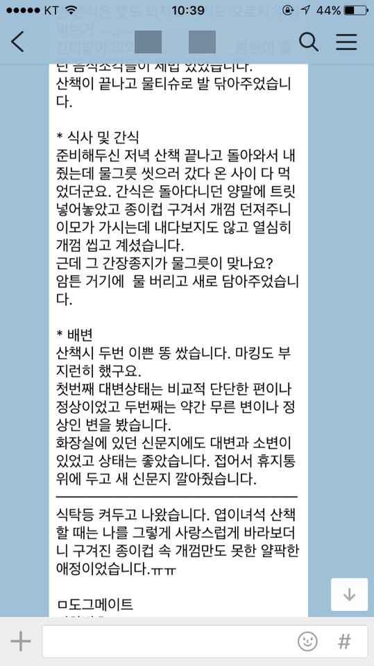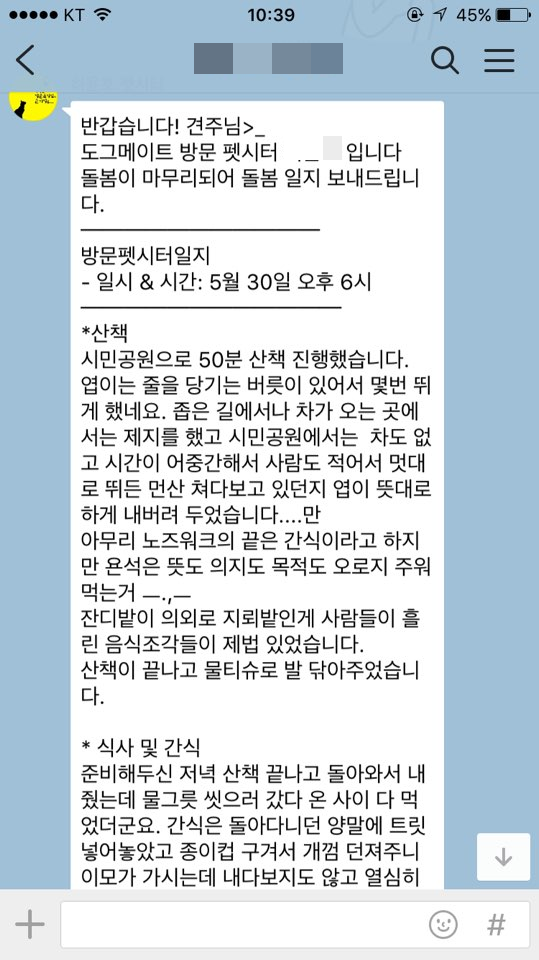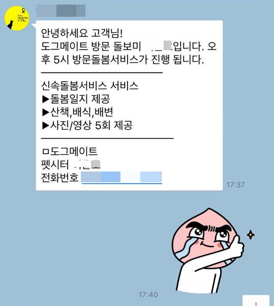 방문펫시터로부터 한 통의 카톡을 전달받는다