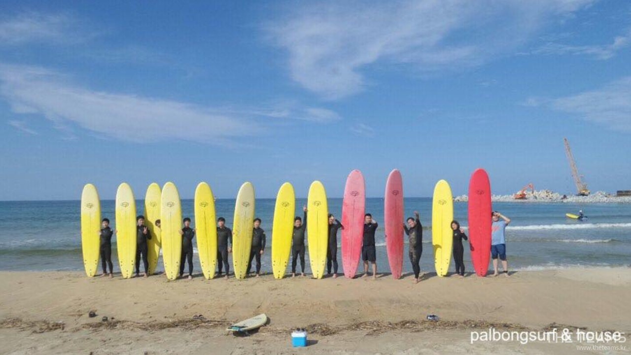 서핑을 하기 위해 챙피한 옷으로 환복은 감수