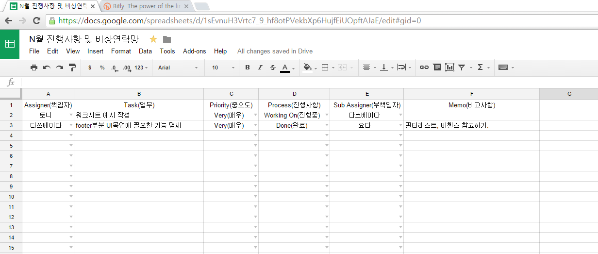 그리고 보다 빠른 피드백을 위하여 Google Docs를 사용, 팀원들이 업데이트 한 내용을 즉시 트레킹 할 수 있도록 하였습니다.