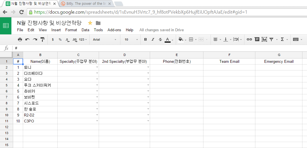 가장 주가 되는 진행사항에 대한 상황을 파악하는 란 입니다.Sheet 2. Emergency Contact (비상연락망)